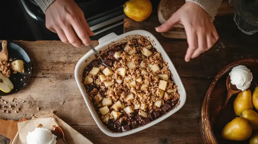 Crumble poire chocolat – Recette facile, croustillante et gourmande
